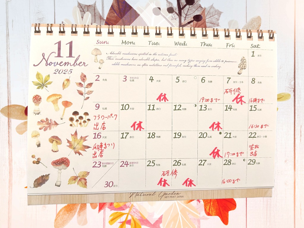 11月は出店が多く皆様にはご迷惑をお掛けいたしますが、何卒宜しくお願いいたします。