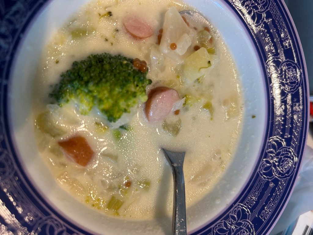 今回は下の息子がクリームスープが食べたいとリクエストがあったので、上の息子と私はクリームスープにハニーマスタードを入れて食べました。