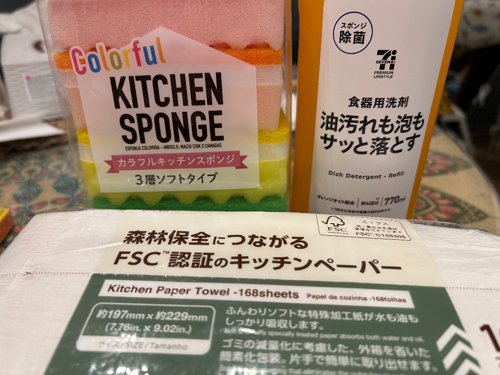 と食器用洗剤とスポンジとキッチンペーパー(^^)/