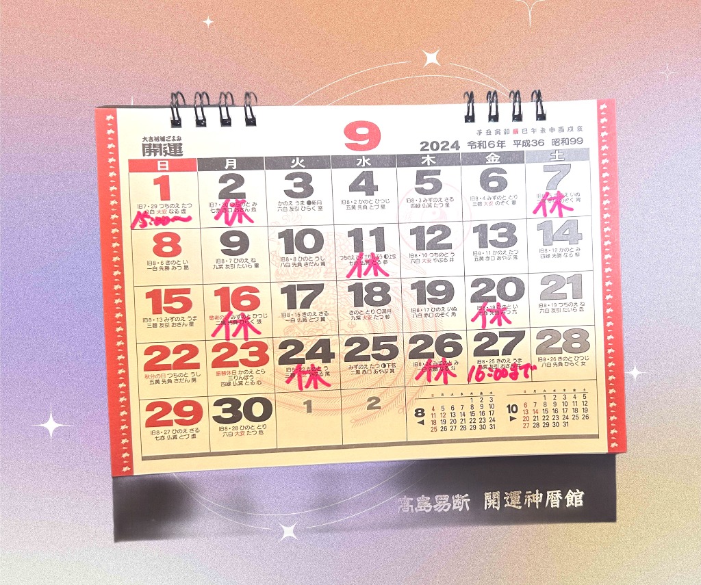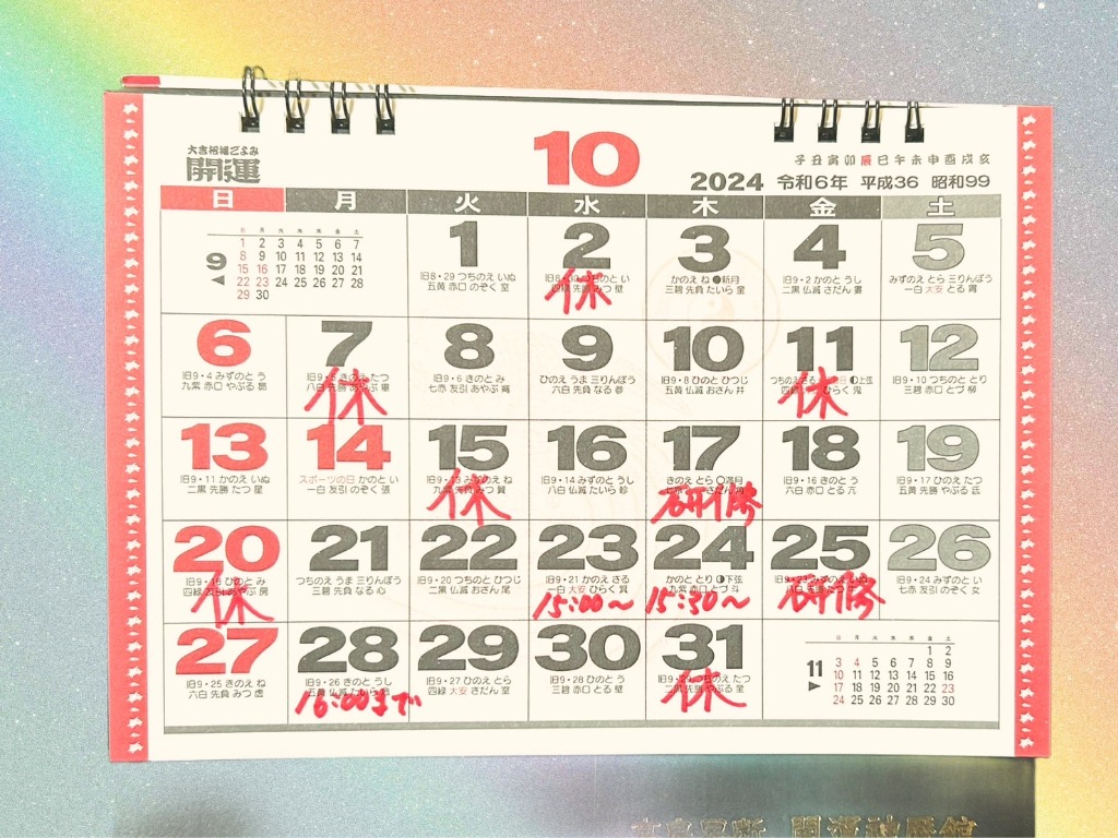 大変遅くなりましたが、10月のお休みのカレンダーです。